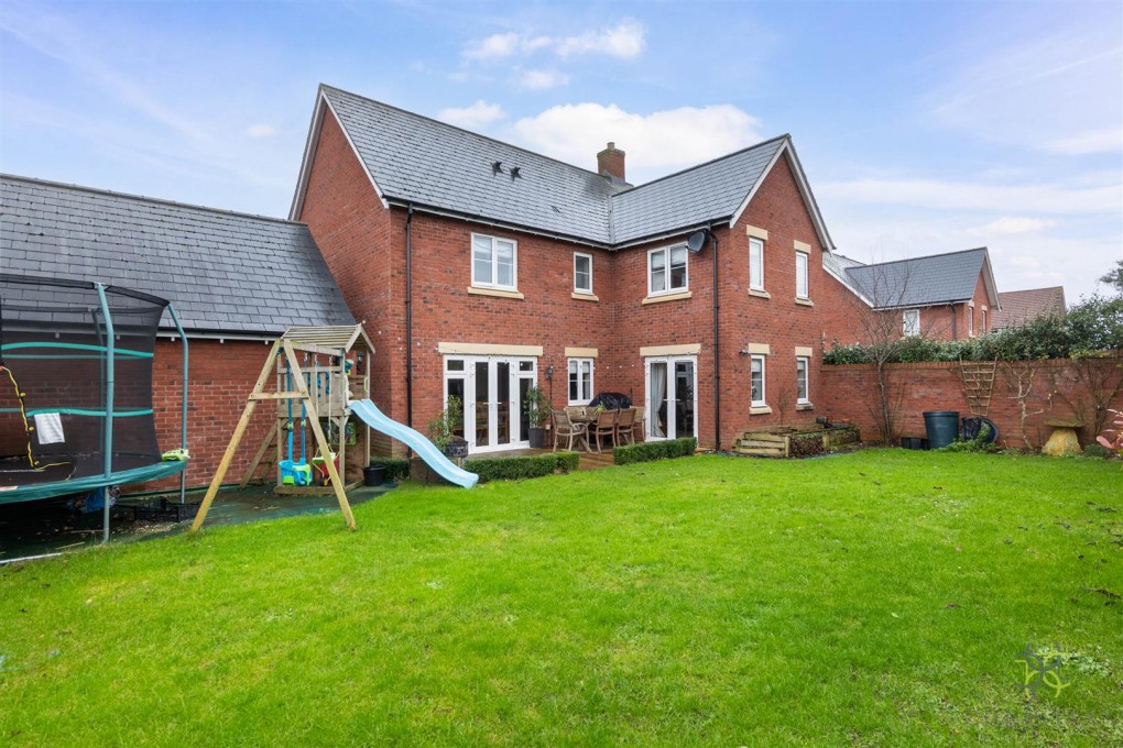 An executive detached family home with double garage. Nestled in the picturesque and highly sought-after village of Bretforton, this beautifully presented four-bedroom detached family home. Boasting two bathrooms, three versatile reception rooms, and a double garage, this property is perfect for modern family living. With gas central heating and double glazing throughout, it provides warmth and efficiency all year round. Upon arrival, a paved pathway leads to the front door, opening into a welcoming hallway that provides access to all principal ground floor rooms, including a convenient downstairs WC. The home’s three reception rooms offer a wealth of flexibility to suit a variety of needs. The sitting room, bathed in natural light, features large windows and doors opening onto the rear garden, creating a seamless connection to the outdoor space. The formal dining room, with its bay window, is ideal for hosting family meals and entertaining guests, while the third reception room—currently used as a playroom—also benefits from a bay window, making it a bright and airy space adaptable for use as a study, snug, or home office. At the heart of the home is the impressive breakfast kitchen, designed for both functionality and style. Ascending to the first floor, the property boasts four well-proportioned bedrooms. The master suite is a true retreat, featuring a dedicated dressing area and a private ensuite shower room. The remaining three bedrooms share access to a stylish and spacious family bathroom. The front garden is beautifully enclosed by elegant wrought iron estate fencing, enhancing the home’s charming kerb appeal. To the rear, the private and well-stocked garden is primarily laid to lawn. For added practicality, there is pedestrian access to the double garage, which is equipped with power, lighting, and valuable eaves storage, ensuring ample space for vehicles and additional belongings.